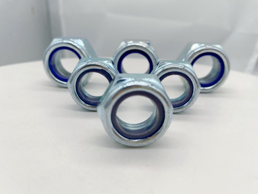 सेल्फ-लॉकिंग कैप नट: हेक्सागोनल क्षेत्र में मुड़ धागे कंपन के कारण नट को ढीला करने से रोकने के लिए एक तंग घर्षण फिट बनाते हैं